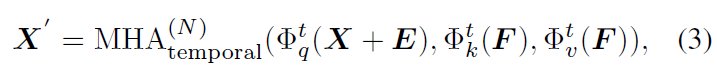 각 object마다 selected neighborhood가 주어지면, 이제 MHA(multi-head attention) 레이어를 활용해 비디오 내 인접 프레임에서 정렬된 다른 객체들로부터 정보를 집계하여 object representation을 정제하게 됩니다.
