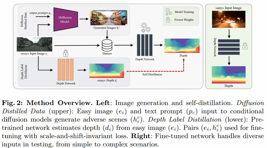 - diffusion 모델을 통해 다양한 이상상황에 대한 데이터를 생성하여 기존 MDE 모델의 이상상황에 대한 depth 추정 성능을 향상