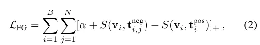 정답 캡션과 hard negative 캡션을 통해 같은 객체에 대한 속성/재질/색 등의 미세차이를 구분하도록 학습합니다. 1번 수식과 2번수식의 차이점을 보자면 1번은 배치 내의 다른 샘플로 카테고리 중심으로 학습하는 것이고 2번 수식은 같은 이미지 내의 positive & hard negative 를 학습시켜 미세 구분을 중심으로 학습하는 것입니다.