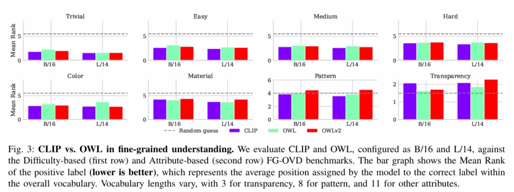 Fig 3에서 CLIP과 Owl-ViT와의 비교 실험이 진행되었는데요 둘을 비교하는 이유가 뭐고 설명해주신 ‘CLIP과 Owl-ViT와의 성능이 비슷함을 보여 detector의 문제가 아니라 CLIP 문제임을 뒷받침’한다란 결론을 내릴 수가 있는 지 설명해 주시면 감사하겠습니다.