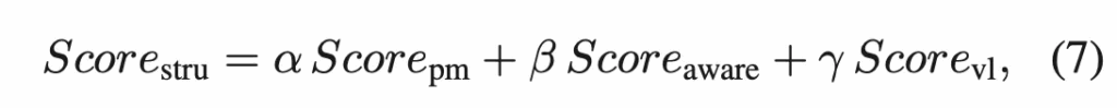 마지막으로 원래 patch matching score와 component aware score와 image-text score를 가중합하여 최종 structural anomaly score map을 뽑아냅니다.