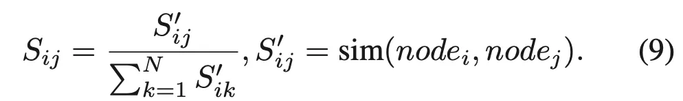 여기서 N은 graph에 있는 node 수가 되겠고, S들이 아래 식9처럼 계산되는 두 노드 간의 cosine 유사도입니다.