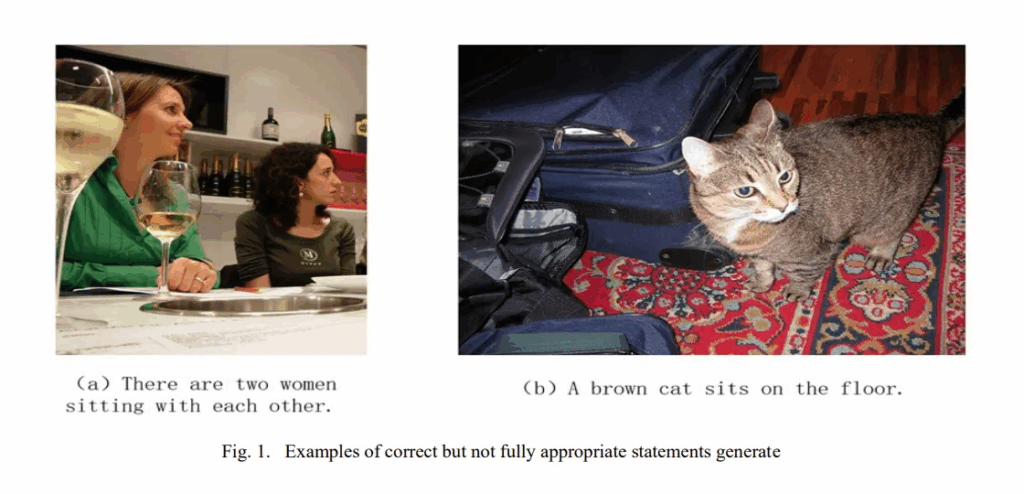 둘째로 복잡한 장면에서 객체 간의 관계를 정확하게 설명하지 못한다는 점입니다. 이 문제는 이미지의 전역적인 특징에 지나치게 의존하거나, Attention을 활용하더라도 누락되는 정보가 많기 때문이라고 저자는 주장합니다. 그러면서 figure 1에 있는 사진의 caption을 예로 들며 문법적이나 사실적으로는 맞으나 장면 전체를 정확히 묘사하지는 못한다고 주장합니다.
