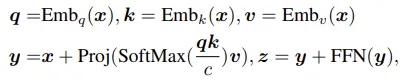 x는 cls 토큰에서부터 각 이미지 패치들을 임베딩 벡터화 시켜서 표현됩니다. 이 벡터를 이용하여 각 패치 사이의 attention score를 뽑고 v라는 벡터에 곱해주어 다른 패치들과의 관계가 가중합된 임베딩 벡터가 생겨나고 여기서 최종 output인 z의 cls토큰을 전역적인 토큰으로 사용합니다.