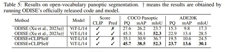 panoptic segmentatoin 에서는 ODISE 에 저자의 방법론을 붙였으며