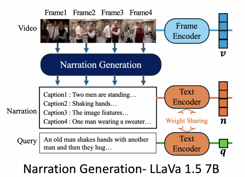 먼저 Narration Generation 모듈에 대해 살펴보겠습니다. 캡션을 생성하기 위해 저자는 LLAVA 1.5 7B 모델을 사용했습니다.