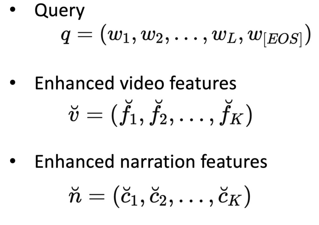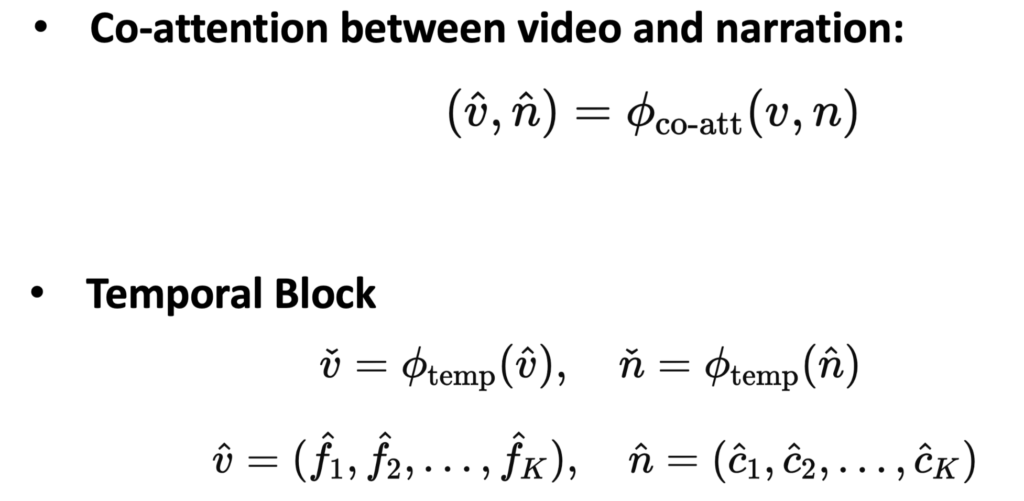 - frame features와 caption features의 Co-Attention을 통해 서로의 정보를 바탕으로 피처를 강화