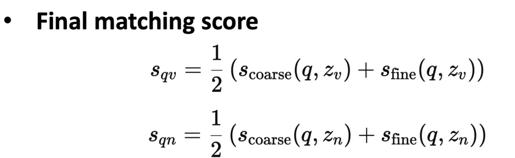 최종 매칭 스코어는 Coarse Matching과 Fine-Grained Matching 결과를 평균 내어 값을 결정합니다.