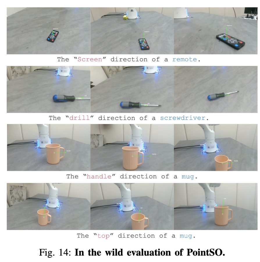 1. 사실 Fig.1을 보면 ‘cut’도 있고, Fig.2 의 경우는 ‘Take photo’도 있고, Fig.4를 보면 ‘drilling’도 있고 사실 물체에 대한 설명, 방향 정보 외에도 affordance 같은 행동에 대한 설명도 있습니다. 물론 저자들이 인트로에서 언급한 플러그 꽂기에 대한 데모를 보인 흔적은 없어보이고(프로젝트 페이지에서도 찾기 힘드네요), 플러그 구멍에 대한 정밀한 방향 정합이 맞아야한다는 점에서 어려운 작업임에는 확실하나, OMPL로 진행되는 low-level policy를 추후 Dual-system에서의 IL기반 action model로 대체한다면 충분히 확장가능하지 않을까 생각합니다.