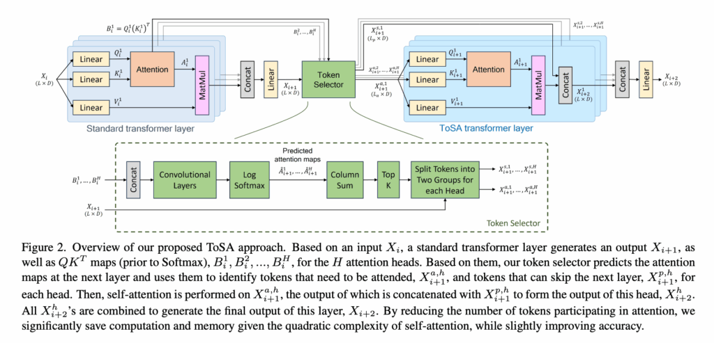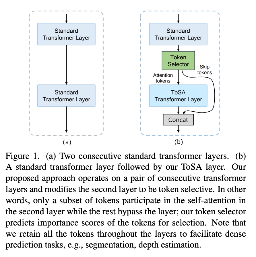 사실 ToSA 레이어와 standard Transformer layer는 크게 다를 것 이 없이 단지 모든 토큰을 받아서 처리하는지, 선별된 중요한 토큰만 받아서 그에 맞게 처리하는지의 차이라고 보시면 됩니다.