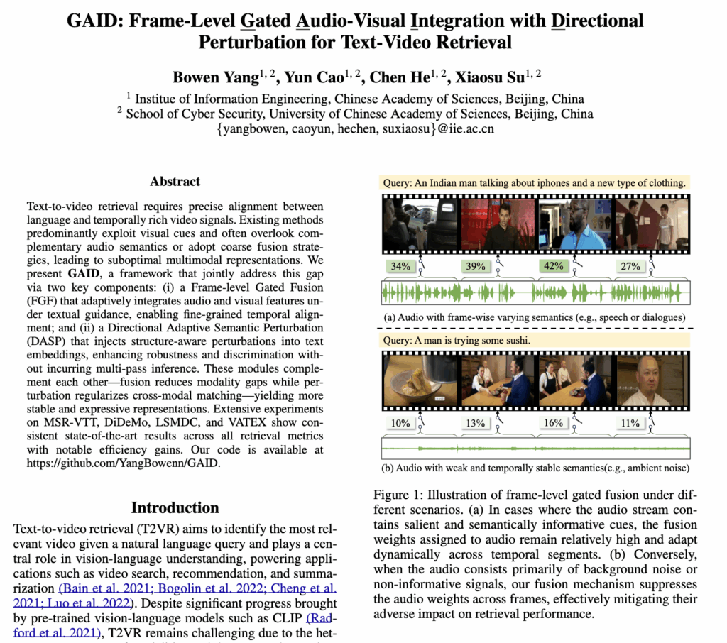 - Title: GAID: Frame-Level Gated Audio-Visual Integration with Directional Perturbation for Text-Video Retrieval