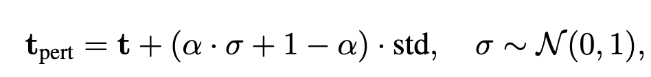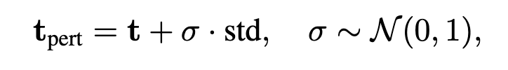 먼저, 텍스트 임베딩t과 멀티모달 정보로부터 계산한 분산 벡터 \text{std}를 구합니다. 이 때, \text{std}는 노이즈를 추가할 방향을 나타내는 벡터입니다