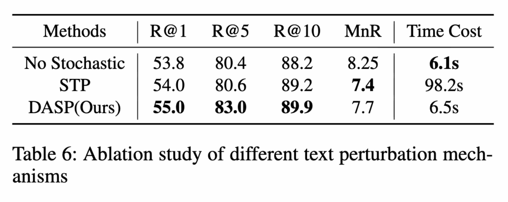즉, DASP는 “아무 방향으로나 노이즈를 넣는 대신, 비디오와 텍스트가 실제로 차이가 나는 방향에만 노이즈를 주입”해 더 정밀하고 효율적인 정규화 효과를 주고자 하였다고 합니다.