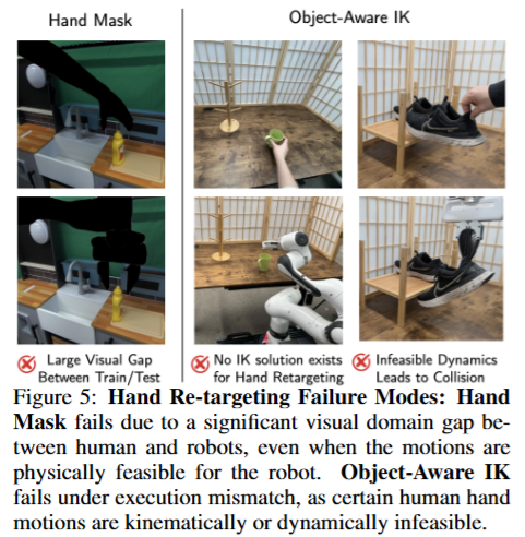 두번째 질문에 대한 답도 결국 인간 손을 따라가다보면 로봇이 로봇만의 방식으로 작동하는게 아닌 다른 관절구조, 링크 구조를 갖는 인간의 움직임을 따라가면서 embodiment gap이 발생하게 되는데, 물체의 위치를 로봇이 알아서 찾아가면서 해당 문제를 최소화합니다