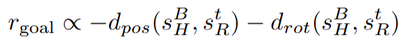 또 해당 연구의 contribution은 강화학습 이후에 현실로 deploy하는 과정에서 로봇 policy의 인코더를 학습하는 loss를 제안해 현실과 시뮬레이터의 gap을 줄인것에도 있기 때문에 reward 자체가 꼼꼼하게 설계됐다기 보다는 기존의 방법을 따르되 관점만 좀 새롭게 바꾸고, 추가적인 refinement를 진행해서 성능이 향상됐다고 이해하시면 될 것 같습니다.