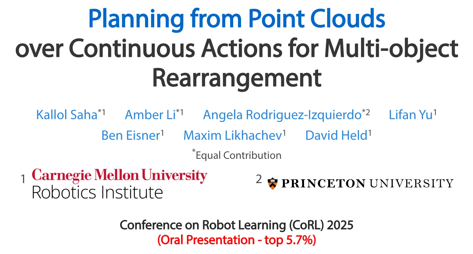 안녕하세요. CoRL 2025 Oral, Planning & Safety & Robustness 세션에서 발표될 논문이라고 하여 관심을 가지고 읽어보게 되었습니다. 해당 세션에 유독 oral paper가 적었는데요. 이 논문은 특히 planning 태스크 중 multi-obejct rearrangement 라는 manipulation planning task에 맞춰, 기존의 방법론들이 symbolic한 제약조건들을 기반으로 연속적인 행동을 이산화시켜 planning하던 것을, 연속적으로 planning하게 만든 방법론입니다. 특히 point cloud 인풋 기반으로 관측 내의 다음 장면에서 움직일 가능성이 있는 object의 movable probability를 예측하고, 현재 장면과 특정 object를 기준으로 다음 장면의 action이란 것을 object point cloud에 대한 연속적인 transformation 변환으로 정의하고 이를 샘플링해서 특정 위치로의 배치를 제안하는 방식입니다. 즉 객체를 다음 장면의 어디에 둘 수 있는 지에 대한 예측까지 진행하고, 이를 토대로 연속적인 planning과 execution을 가능하게 한다는 컨셉입니다. 기존에 제가 알던 LLM 기반 planning과 달리 뭔가 전통 로보틱스 관점에서의 문제정의 접근이 들어간 것 같아서, 본 논문의 contribution이 옛날 방법론 대비 잘 와닿지 않아서 그 역사를 따라가는 데 시간을 좀 투자하느라, 논리나 방법론 설명 등에서 와닿지 않는 표현이나 다소 미약한 점이 있을 것 같습니다. 이해 안되는 부분 댓글 남겨주시면 감사하겠습니다.
