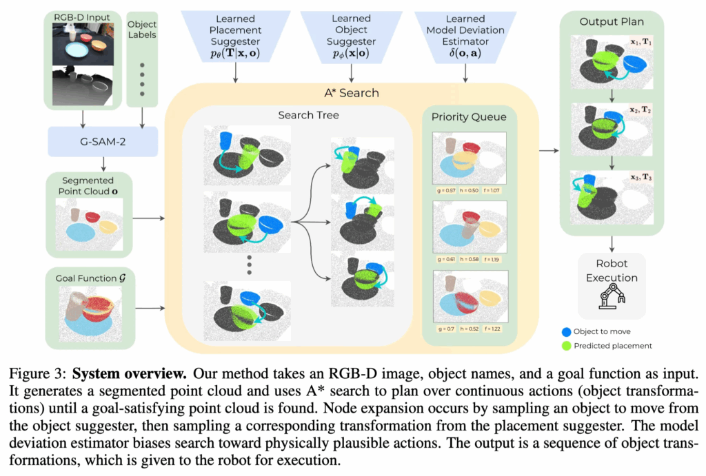 저자들이 새롭게 제안하는 SPOT 방법론은 A* 탐색과 3D 상대 배치 예측을 통합하여 연속적인 상태와 행동 공간에서 계획을 수행합니다.