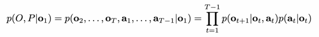 저자들은 이를 강화학습에서 보통 많이 언급되는 그 Markov decision model로 아래처럼 공식화해서, 관찰 o_{t+1}이 이전 관찰 o_t와 행동 a_t에만 의존하도록 합니다.