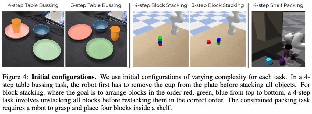 - 4-step Block Stacking: 블록 4개를 올바른 순서로 쌓기.