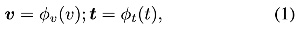 Nv개의 비디오 클립과 Nt개의 텍스트로 구성된 데이터 세트, D = {vi, tj }가 주어지면 각 비디오 클립에는 하나 이상의 해당 텍스트 query가 있습니다. T2VR 는 주어진 텍스트 query와의 유사도를 기반으로 가장 유사한 비디오의 순위를 정하는 것입니다. T2VR 모델은 일반적으로 텍스트 인코더 ϕt와 비디오 인코더 ϕv를 사용하여 비디오와 텍스트를 cross-modal feature space로 임베딩합니다.