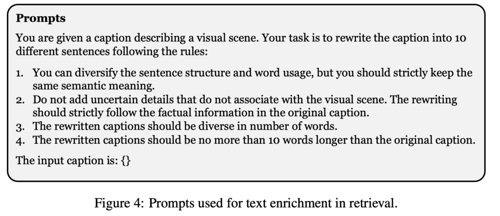 - Text Enrichment in Retrieval : 이는 검색 단계에서의 텍스트 강화를 하는 단계로 GPT-4를 사용하여 User Query를 다양하게 하고 이중에서 선별하여 검색 성능을 향상시킵니다.