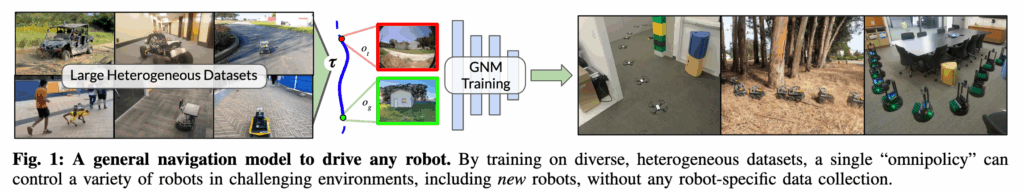 사실 GNM의 핵심은 단순한 데이터 통합도 있는데, 이질적인 로봇 간 차이를 흡수할 수 있도록 설계된 구조적 정규화 기법도 있고 이를 바탕으로 기하학적인 정보 없는상태에서도 장소와 로봇에 구애받지 않는 범용 내비게이션 정책을 실증한 것이 핵심이라는 생각이 듭니다!