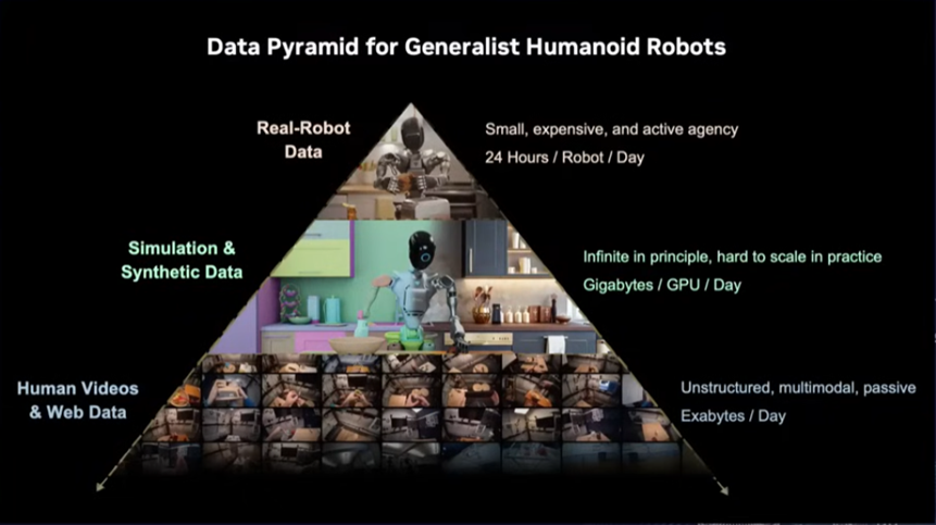 - 단순히 데이터를 모으는 것보다, 데이터를 어떻게 수집하고 활용할지를 설계하는 ‘데이터 알고리즘’ 의 필요성을 이야기함. 모든 데이터를 모으는 것 보다는, 로봇이 스스로 ‘어떻게 배워야 하는 지’ 추론할 수 있어야 하며, 필요한 정보는 검색을 한다던가 하는 추론 능력이 필요하다고 함.