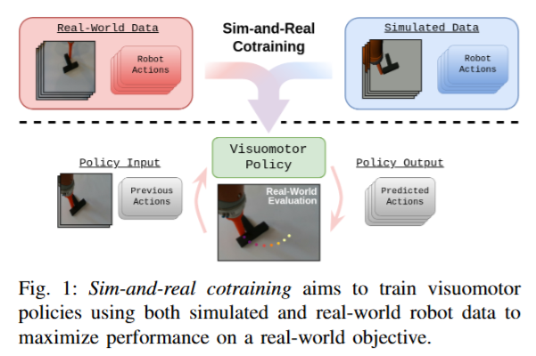 자연어 처리와 컴퓨터 비전 분야에서 대규모 데이터로 학습된 거대 모델들이 혁신을 이루었지만, 로보틱스 쪽에서는 쉽지 않는데요, 늘 말하듯 실제 로봇 시연 데이터를 모으는 일은 비용과 시간이 많이 들기 때문입니다. 다행히 시뮬레이션이나 비디오 같은 대안 데이터원이 유용한 정보를 제공할 수 있으며, 특히 시뮬레이터를 이용하면 로봇 데이터를 자동으로 수집할 수 있다는 엄청난 강점이 생깁니다. 시뮬레이션과 현실데이터는 각자 장단점이 있지만, 어느 하나만으로는 충분하지 않으므로 두 데이터를 상호보완적으로 활용하는 전략이 로봇 모방학습 성능을 크게 끌어올릴 잠재력을 갖는다고 봤다고 합니다. 저자는 이러한 co-training 방법을 심층적으로 조사하여, 시뮬레이션과 현실 데이터를 함께 활용할 때의 성능 향상 요인과 원리를 분석했습니다. 기존의 co-training의 recipe를 처음 제시한 nvidia의 논문보다 조금 더 다양하고 심층적인 분석이 들어가있었습니다. 저자들도 해당 연구를 통해 시뮬레이터 설계와 데이터 구축에 대한 지침을 제시하는 것이 연구의 목표였다고 합니다.