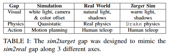 Sim2target gap vs Sim2real gap