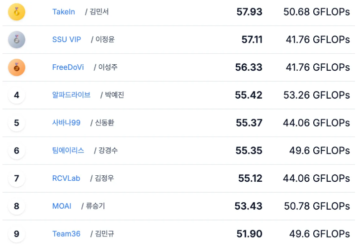 다만 아쉬운점은 4등부터 7등까지 성능차이가 크게나지 않기 떄문에, 조금만 더 올렸다면 2차 평가기준인 4등에 들 수 있지 않았을까하는 아쉬움이 남습니다.