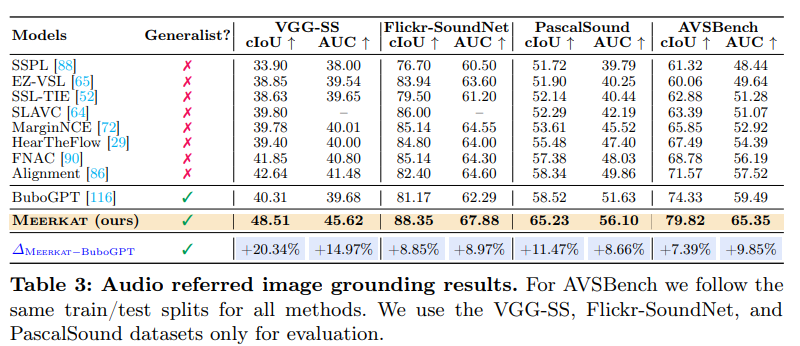 Audio Referred image Grounding 에서는 Meerkat 이 box 를 예측 (output)