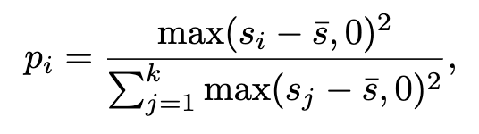 MUS에서 max(s_i−\bar{s},0)로 평균보다 낮은 값은 0으로 버리는 이유는, 정답 가능성이 거의 없는 후보를 확률 분포에서 제외해 불필요한 노이즈를 없애기 위함입니다.