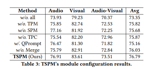 저자는 핵심 악기와 관련된 시각적 영역을 식별하기 위해 SPM 을 설계하였습니다. 간단하게 얘기하자면 선택된 시간 구간 내에서 시각 토큰들을 유사도 기반으로 병합하여 그들의 의미를 보존하는 설계입니다. 기존 연구가 질문과 시각 토큰 간의 의미 유사도를 기반으로 중요한 영역을 식별하려 했지만 이들 토큰 내 객체에 대한 의미 정보가 부족해 소리와의 효과적인 상관 관계를 구축하기 어려웠다고 합니다. 이를 해결하기 위해서 저자는 선택된 핵심 시간 구간을 시각 토큰들의 의미 정보를 더 잘 보존하도록 강화했다고 하며 유사한 토큰들을 각 프레임 내에서 병합함으로써 객체에 대한 더 풍부한 의미 정보를 갖는 병합 토큰이 생성되게 했습니다.