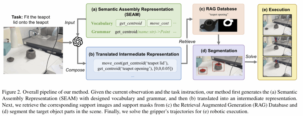 - VLM 기반의 로봇 조작을 위해 새로운 Semantic Assembly representation (SEAM)을 제안하여, VLM의 추론과 로봇 행동 사이의 간극을 효과적으로 연결