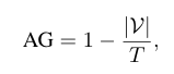 |\mathcal{V}|는 모든 인간 지시문을 변환하는데 필요한 고유 어휘 수이며, T는 전체 task의 수를 의미합니다. AG가 높을수록 작업 표현에 필요한 어휘 연산 수가 적다는 것을 의미하며 이는 강한 일반화 능력을 시사합니다.