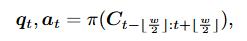 목적은 각 프레임이 local temporal context내(윈도우기반)에서 얼마나 중요한지를 평가하는 것으로 캡션 시퀀스(C)를 인풋으로 해서 π(LLM,사전 학습된 대형언어모델)에 넣어준다.