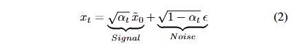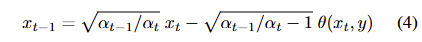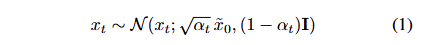 \alpha_t 는 the parameter of the diffusion schedule입니다. \tilde{x_ 0} 는 현재 timestep에서의 target image x_0 의 예측값을 나타내며, 이는 본질적으로 T부터 t − 1까지의 denosing steps 이후의 deterministic signal 역할을 합니다. 이러한 역할을 수식 1을 아래와 같이 수정하여 두드러지게 표현 가능합니다.