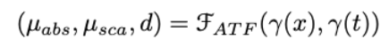 이 식은 ATF가 예측한 흡수 계수 \mu_{\text{abs}}, 산란 계수 \mu_{\text{sca}},