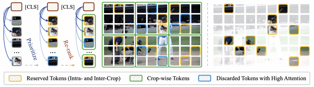 여기까지 기존 방법론들의 문제를 알아보았고, 저자는 이를 극복하기 위해 “How to locate and preserve those not highlighted but critical to visual holistic understanding tokens?”라는 질문을 던지게 됩니다. Attention이 높은 토큰만 써서는 장면 이해에 한계가 있다는 점을 깨닫고 score는 낮지만 중요한 토큰을 어떻게 구할지 고민하게 된 것이죠.