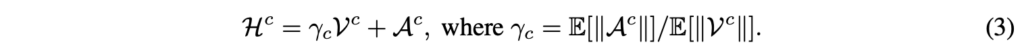위 수식 (3)에서 \mathcal{A}^{c}는 [CLS] 토큰이 각 토큰에 주는 attention weight입니다. 특이한 점은 평균 norm의 비율인 \gamma{}_{c}를 분산 앞에 곱해준다는 것입니다. 아무래도 하나는 분산이고 하나는 attention weight이다보니 두 값간 scale을 맞춰주는 역할도 하고, 일종의 adaptive한 하이퍼파라미터처럼 동작하는 것이라고 볼 수 있습니다.