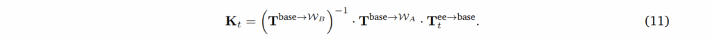 여기서 K_t는 W_B 내에서 재배치된 베이스에 상대적인 새로운 ee pose를 나타냅니다. 이를 풀면 다음과 같습니다.