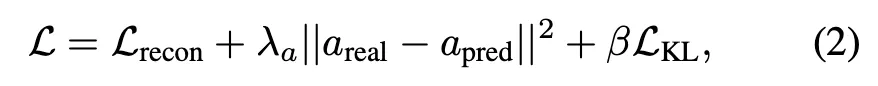 여기서 L_{\text{recon}}은 flow reconstruction error를 최소화하는 항이고, 두 번째 항은 latent action과 real action을 정렬하기 위한 항이며, L_{\text{KL}}은 latent space에 대한 regularization 역할을 합니다. \lambda_a, \beta는 하이퍼파라미터입니다.