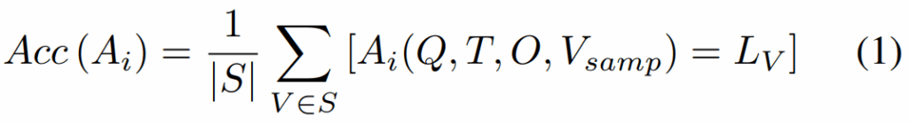 먼저 데이터셋 D에서 라벨 없이 150개 비디오 샘플 S를 뽑고, 각 비디오 케이스 V(질문 Q, 자막 T, 옵션 O 포함)에 대해 답변 후보 집합 Sans를 얻습니다. 그중 가장 많이 나온 답을 그 비디오의 pseudo label LV로 둡니다. 그리고 각 에이전트 Ai가 이 pseudo label을 얼마나 맞추는지 정확도(Acc)로 평가해서 상위 3개 에이전트를 팀으로 뽑습니다.