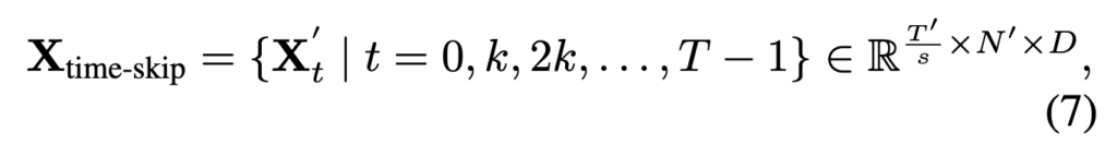 결과적으로 얻는 Xtime-skip은 시간 축 길이가 T/s로 줄어든 토큰 집합입니다.