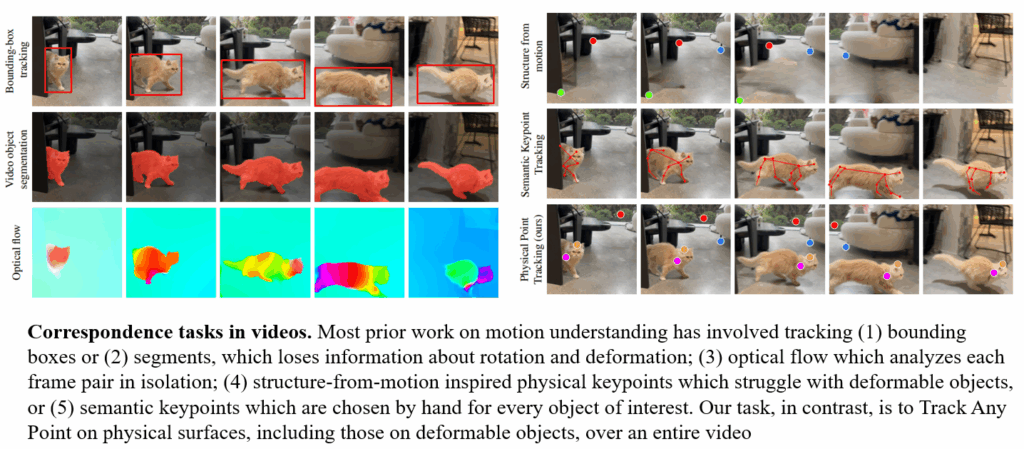 특히, 논문에서 저자들은 detection, segmentation, optical flow, SfM 등등 기존 컴퓨터비전 task만으로는 한계가 명확하다고 주장하면서 Track Any Point라는 task가 필요하다는 점을 강조합니다.