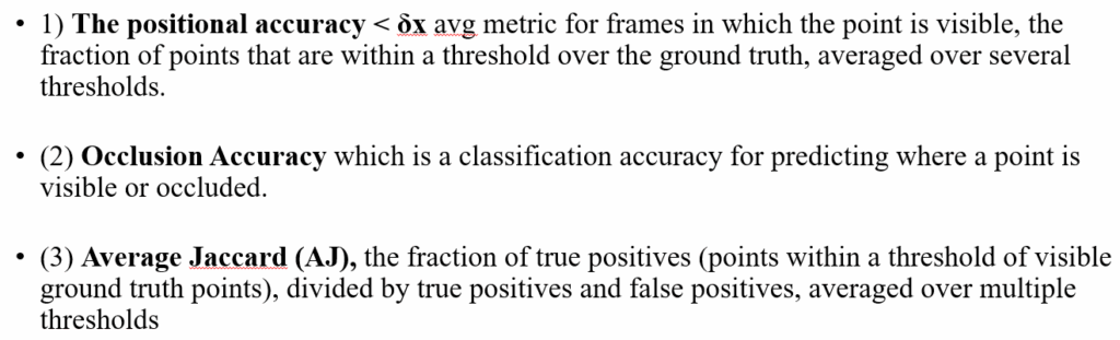이러한 TAP task는 서로 다른 시간대 사이에 대응관계를 잘 찾는 것을 목표로 하는 것이기 때문에 모델 학습을 하기 위해서는 두 대응관계에 대한 GT가 필요합니다. 하지만 정해진 object에 대한 대응관계가 아니라 영상 내 물리적으로 선택할 수 있는 지점이라 하면 occlusion 때문에 보이지가 않는 이상 대응 관계를 반드시 예측해야만 하는 해당 task에서 올바른 양질의 GT를 구하는 것은 상당히 많은 비용이 소모됩니다.