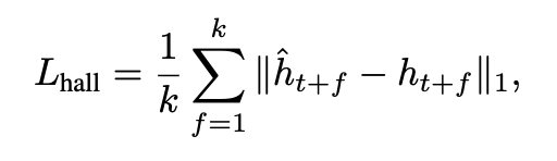 loss는 총 네 가지입니다. waypoint regression loss, orientation loss, arrival prediction loss, feature hallucination loss입니다. waypoint loss는 예측한 waypoints에서 predicted position(x,y)과 GT position의 L2 차이를 의미하고, orientation loss는 predicted direction과 GT direction의 각도 차이를 cosine similarity 기반으로 계산하는 항입니다. 그리고 arrival loss는 goal에 도달했는지 여부를 BCE로 손실항을 구성하고 마지막으로 hallucination loss는 미래 observation feature의 L1 차이를 나타내는 항이라고 보시면 좋을 것 같습니다.